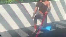 4. 蛇形拉绳:这个动作可以锻炼到手臂、肩部和核心肌群。动作要领:双手交替拉扯战绳,形成蛇形轨迹。