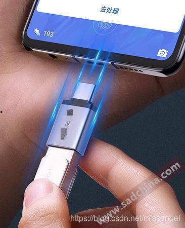 - 将OTG线的一端插入手机,另一端插入U盘。